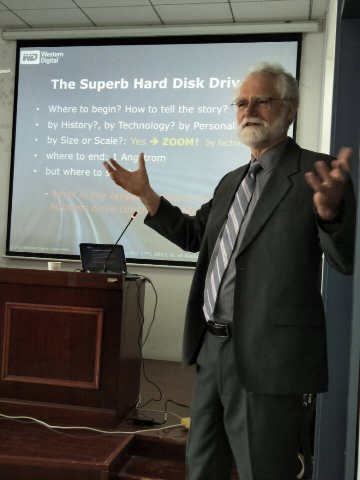 日前,应我校邀请,美国西部数据公司高级专家Roger Wood博士来我校进行技术交流。Roger Wood博士是IEEE院士(美国电子电气工程师协会最高级别会员),为国际资深的磁存储设计专家。交流期间,Wood博士一行参观了我校创新学院,并为我校师生带来了一场精彩的学术报告。学术报告会前,我校史金飞院长、郑锋副院长与Wood博士进行了座谈和交流。