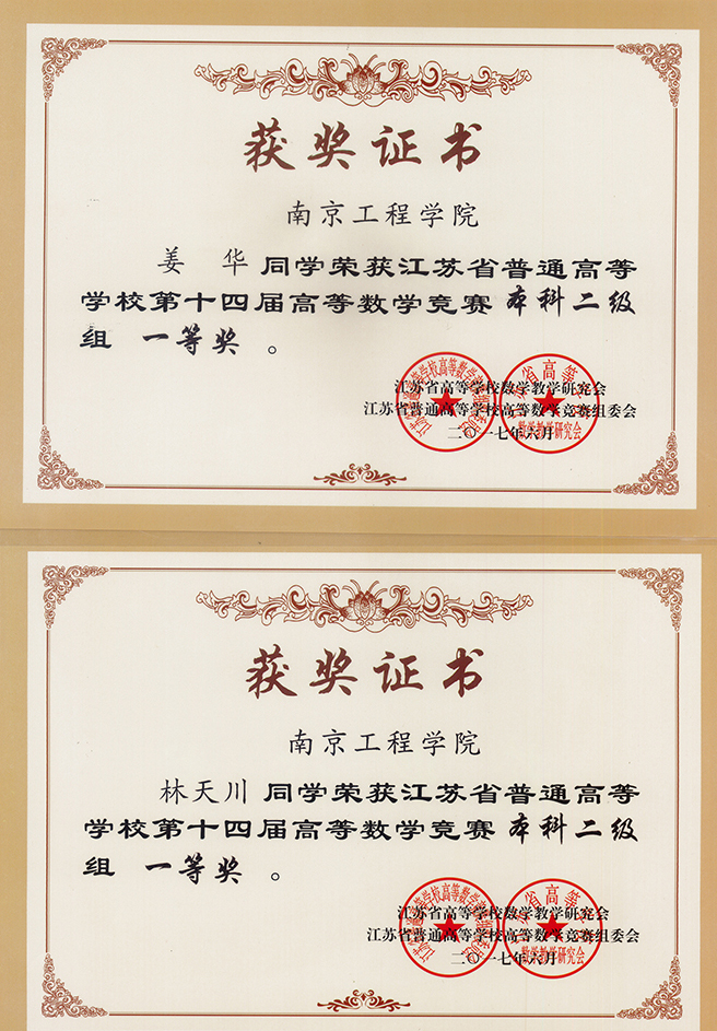近日,江苏省非理科专业高等数学竞赛成绩揭晓,我校学子再创佳绩。本次比赛我校共选送149位同学参赛, 124人获奖,获奖率高达83%,其中29人获得一等奖,45人获得二等奖,50人获得三等奖。