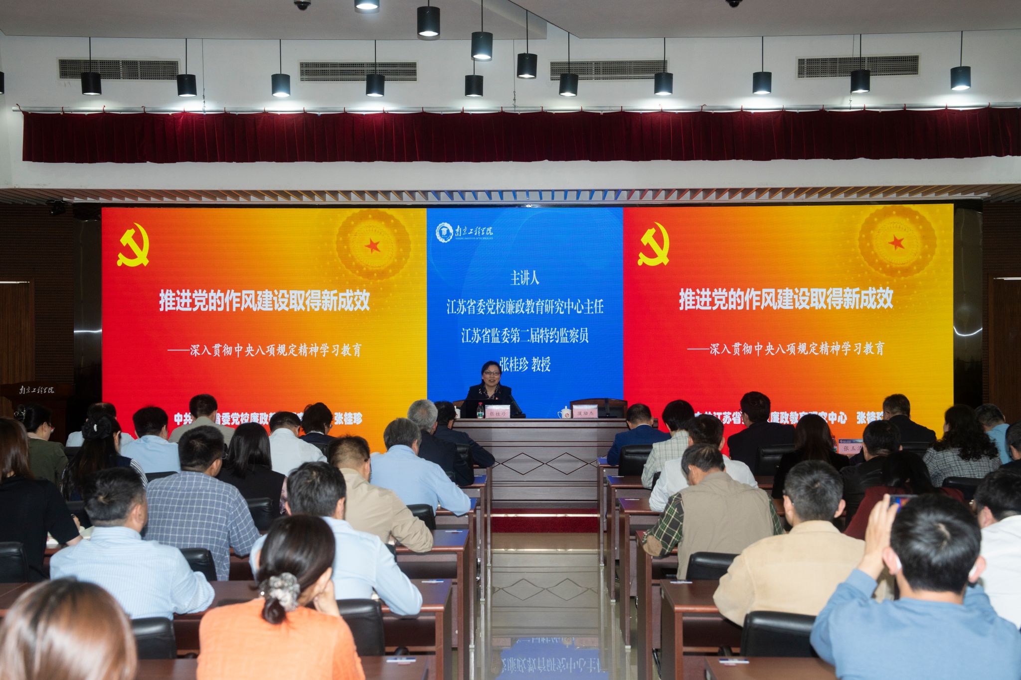 4月9日下午,凯发举行深入贯彻中央八项规定精神学习教育读书班开班式暨专家辅导报告会。党委书记孙爱武作动员讲话,中共江苏省委党校廉政教育研究中心主任、省监委第二届特约监察员张桂珍教授作辅导报告。党委副书记濮励杰主持报告会,全体校领导、中层领导干部、师生党员代表参加开班式。