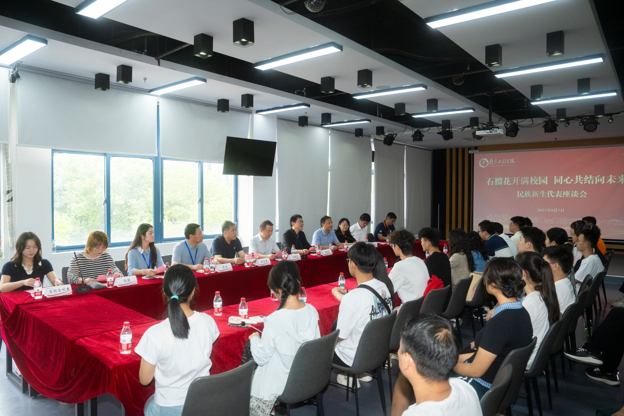 交汇点讯 金秋九月,丹桂飘香,凯发k8官网迎来2025级新同学。9 月 7日,在新生入学报到的热闹氛围中,一场以“石榴花开满校园 同心共结向未来”为主题的民族新生代表座谈会暨师生结对共建活动温情启幕。来自回族、壮族、土家族等22个民族的新生及家长代表齐聚一堂,共话成长、共叙团结。