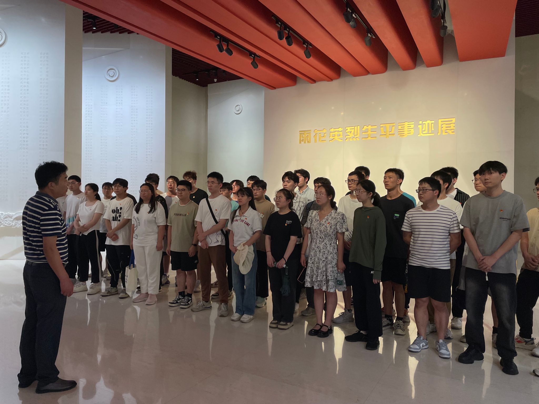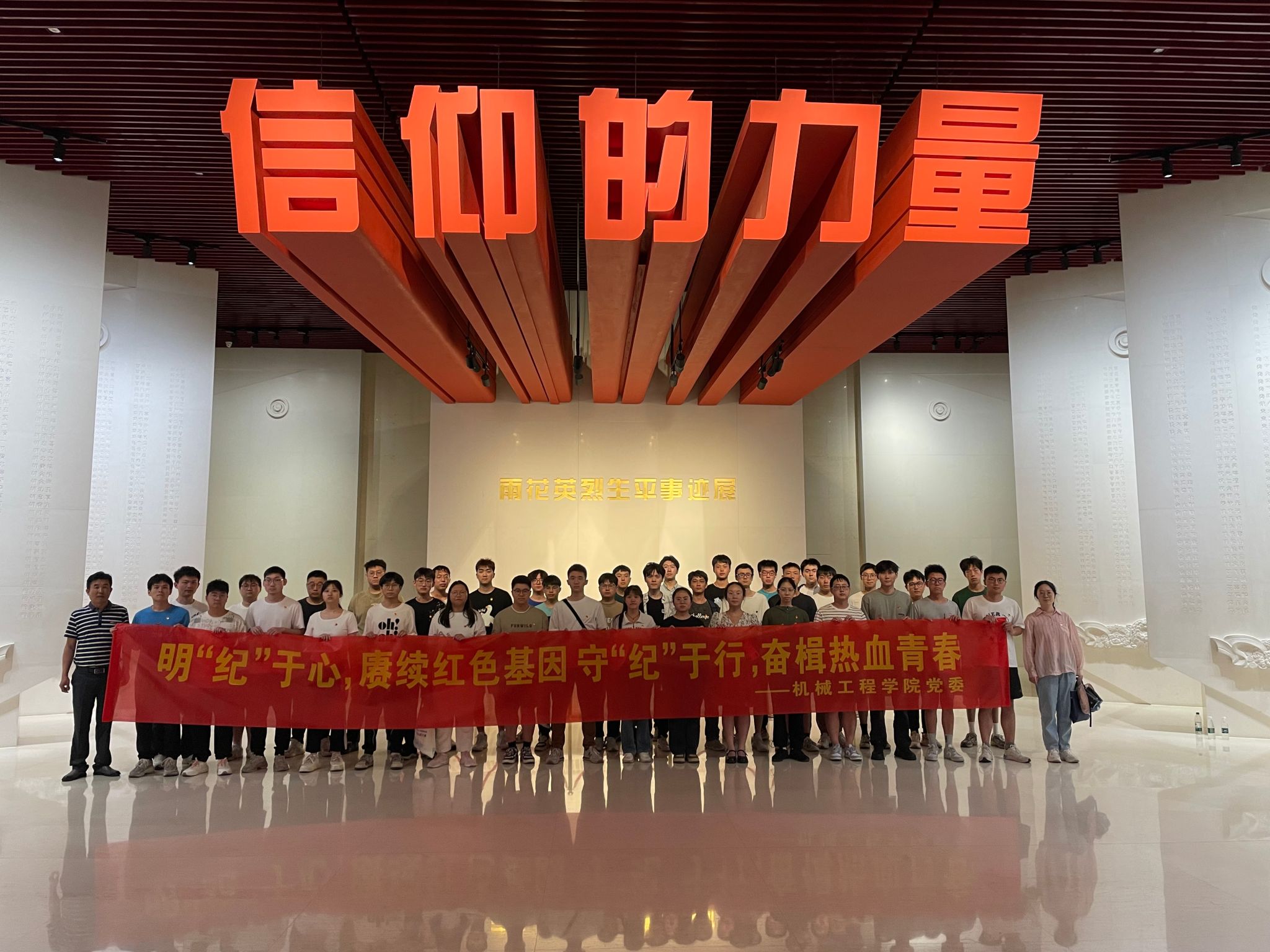 全体成员在烈士纪念馆,参观《信仰的力量——雨花英烈生平事迹展》,深刻感悟雨花英烈崇高理想信念、高尚道德情操、为民牺牲的大无畏精神。党委副书记印书范在现场,寄语毕业生党员要明纪于心,赓续红色基因;守纪于行,奋楫热血青春;以雨花英烈精神淬炼党性修养,在未来的人生道路上,切实担负起党和人民赋予的时代使命,让青春在奉献中焕发绚丽光彩。